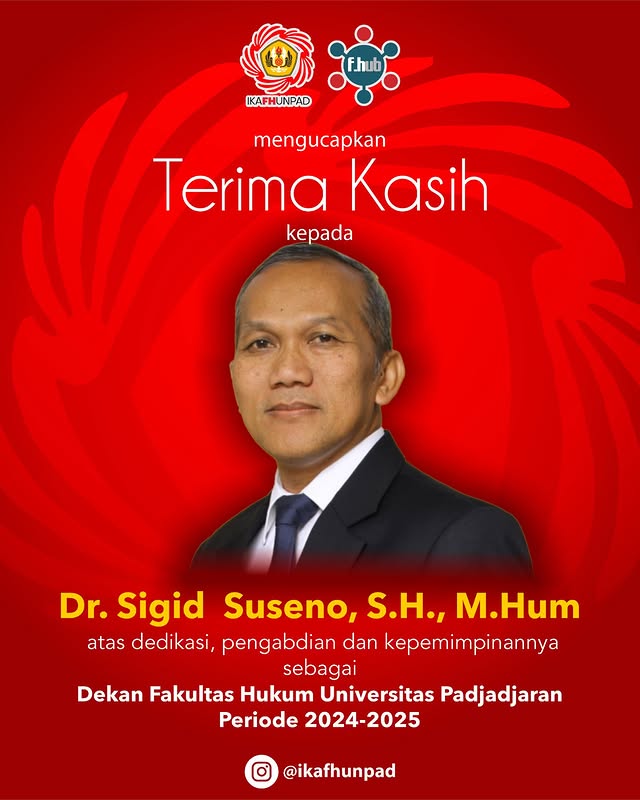 IKA FH Unpad menyampaikan penghargaan dan terima kasih kepada Dr. Sigid Suseno, S.H., M.Hum